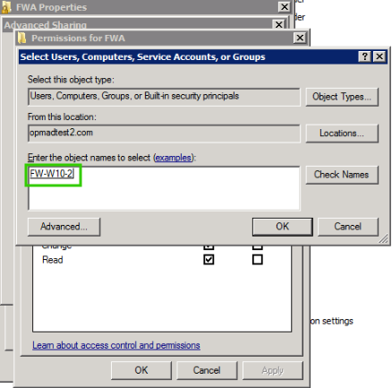 - 必要なユーザーとサーバーを選択し、「フルコントロール」のアクセス権限を選択の上、「適用」