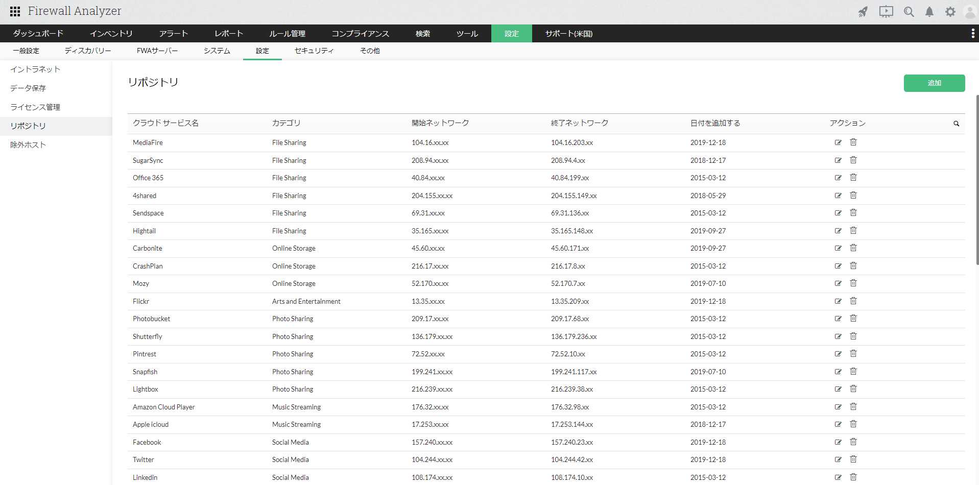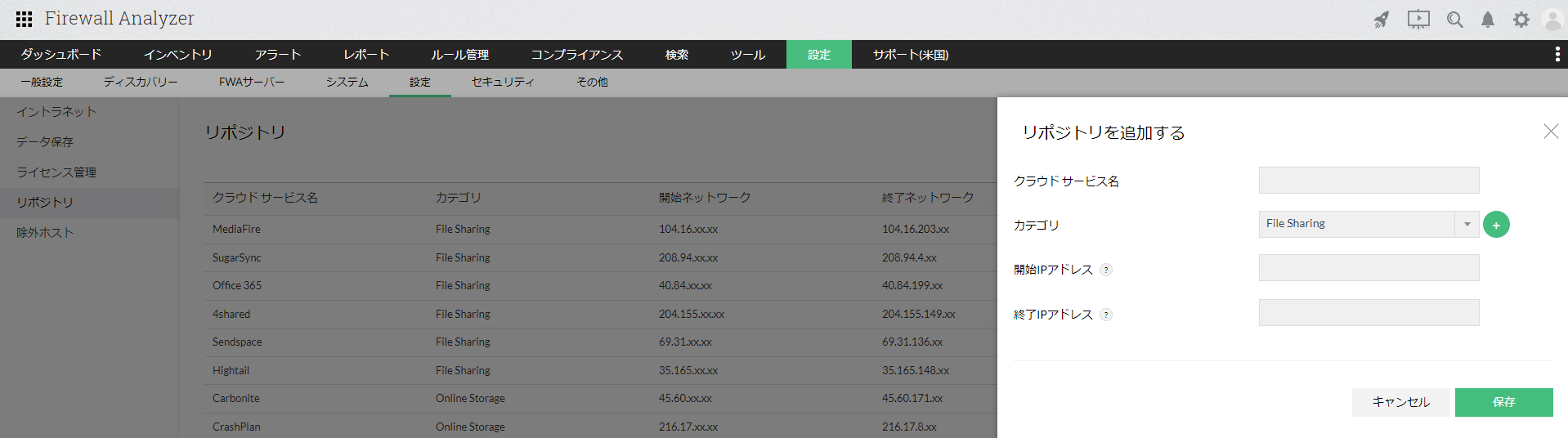 リポジトリ設定には、クラウドアプリやサービスをカテゴリ分けするためのデータが含まれており、 数千以上の様々なクラウドアプリやサービスのデータがあります。ご利用環境やサービスに応じて、固有のカテゴリを追加することもできます。