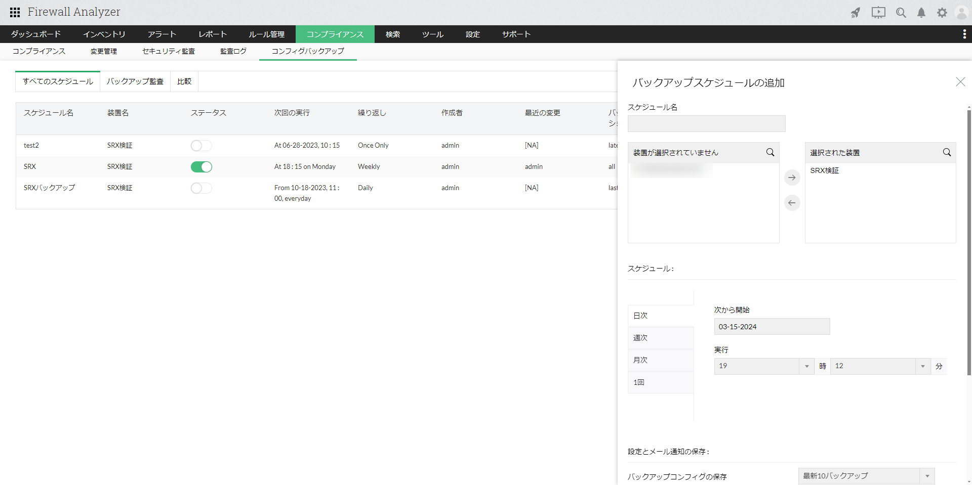 対象装置のコンフィグをバックアップするためのスケジュール設定を行います。
