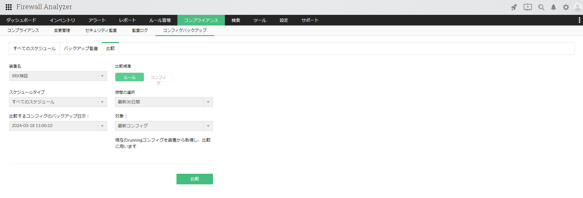 - 比較:取得した別世代のルールまたはコンフィグと比較
