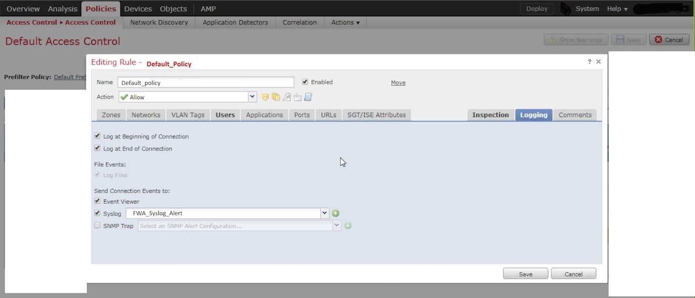 Firepower Management Center(FMC)からFirepower Threat Defense(FTD)のロギングを設定