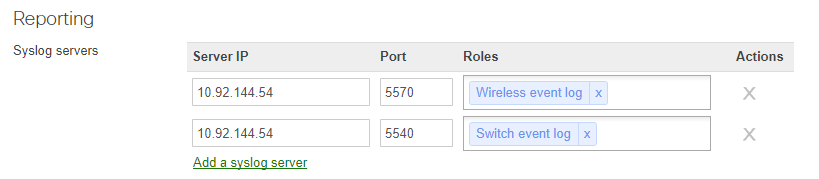 - ロギングのセクションにスクロールダウンし、[Add a syslog server]をクリック