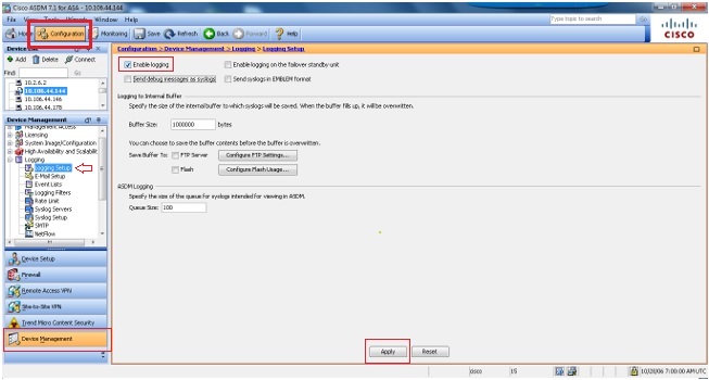 - [Configuration]→[Device Management]→[Logging]→[Logging Setup]を選択