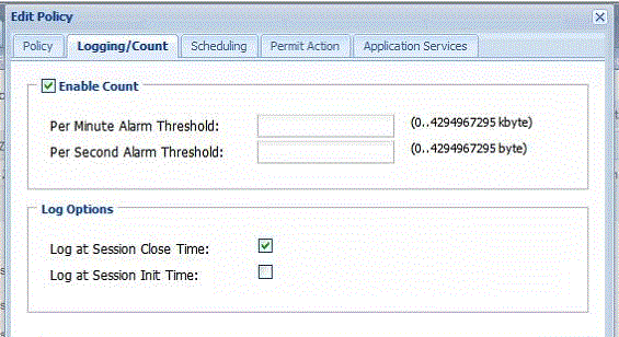 - Log Optionsの[Logging/Count]を開き、[Log at Session Close Time]にチェック