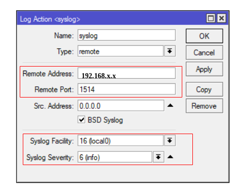- [Remote Address]に、Firewall AnalyzerのインストールサーバーのIPアドレスを入力