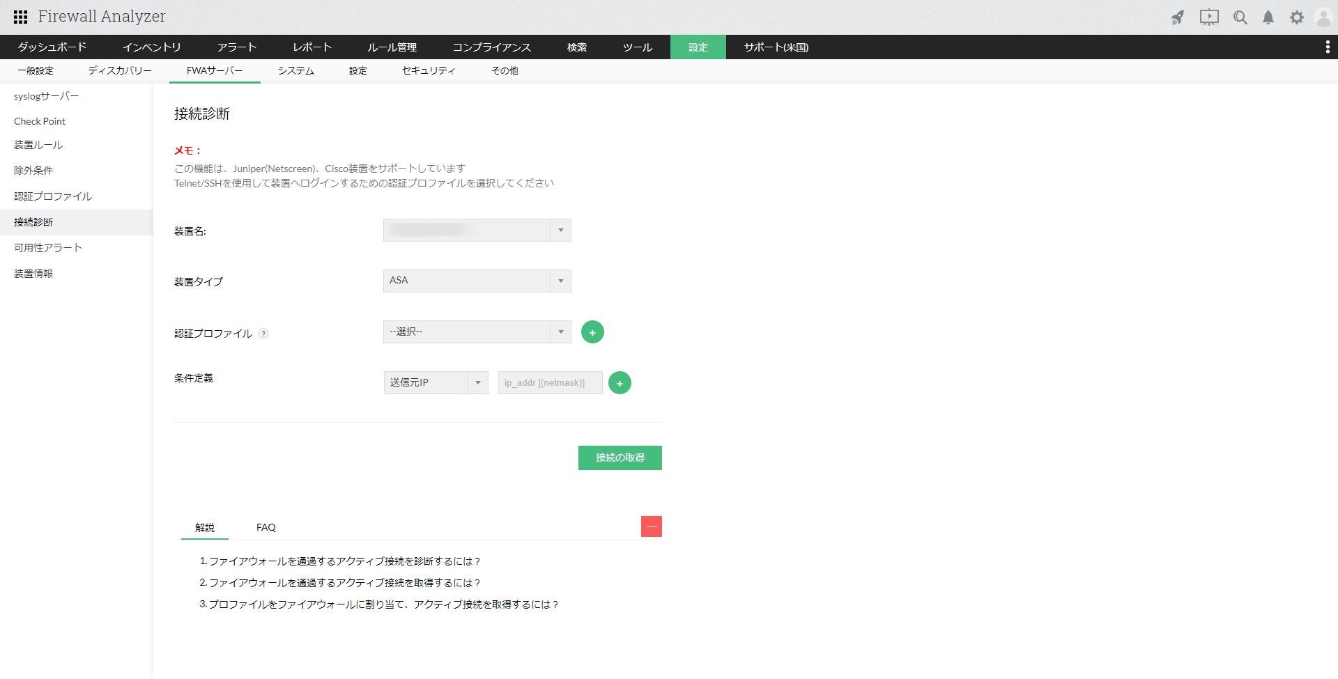 本機能は、Juniper(Netscreen)、Cisco装置のみサポート対象です。