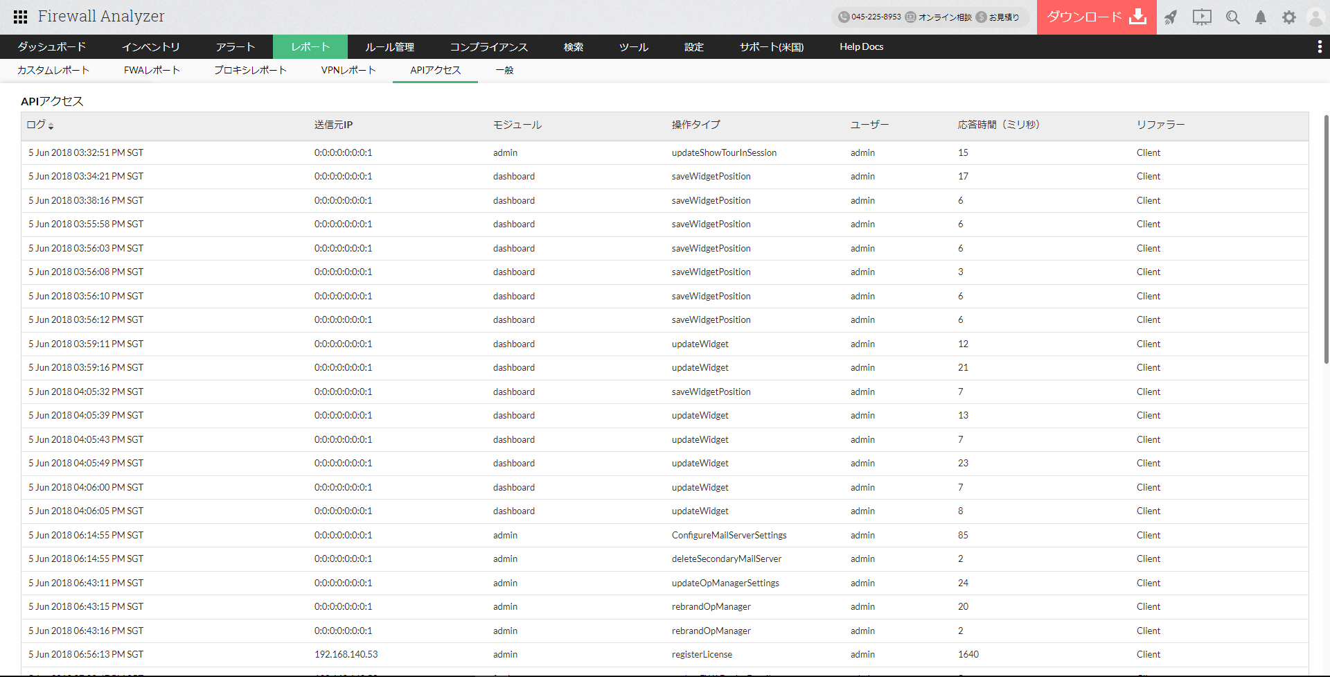 操作を行ったFirewall Analyzerのユーザーアカウントを表示します。 - 応答時間(ミリ秒):