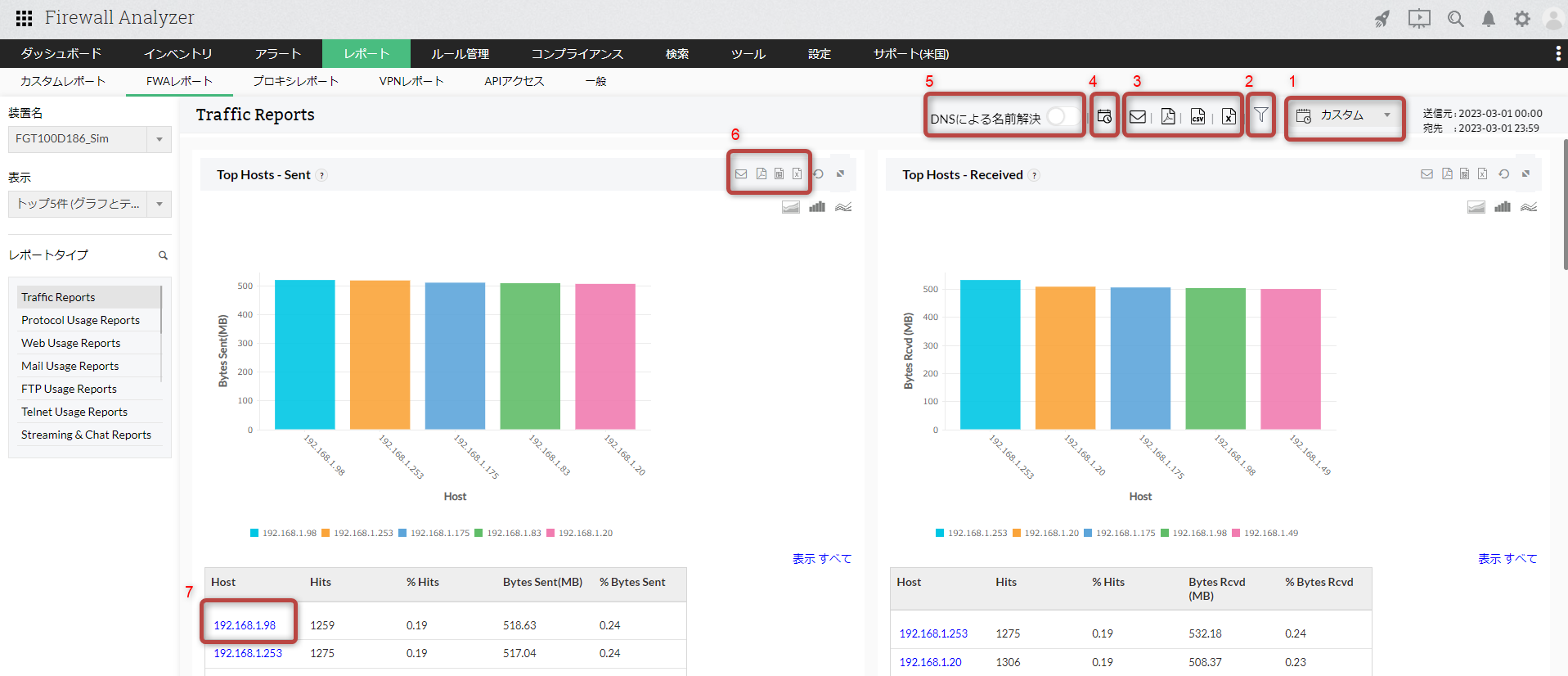 - フィルター(送信元や宛先、プロトコルなどFWAレポートで表示するデータをフィルターします)