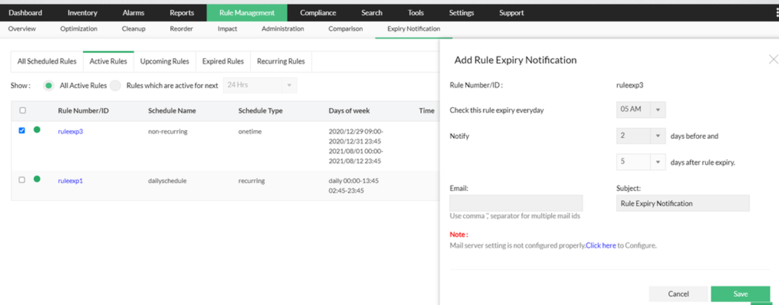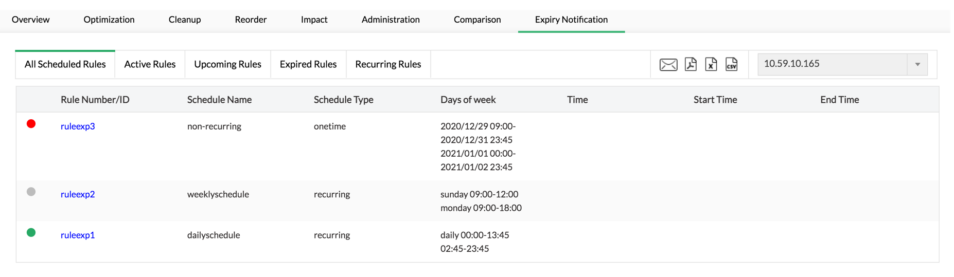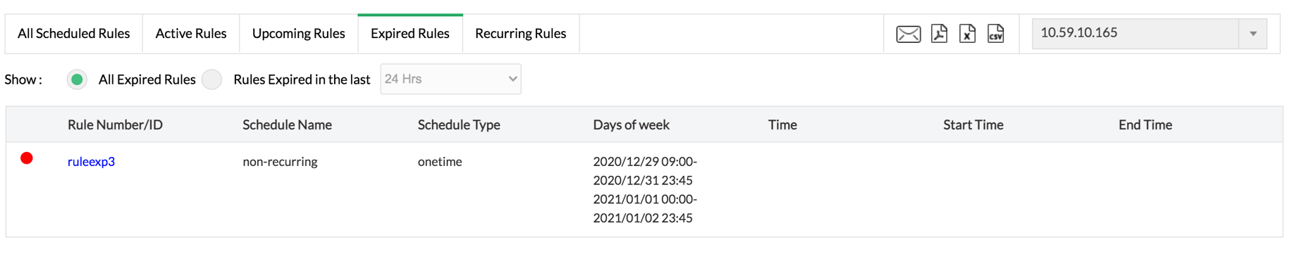 設定されたスケジュールに則り、既に有効期限が切れたルールを一覧で表示します。