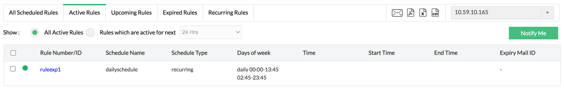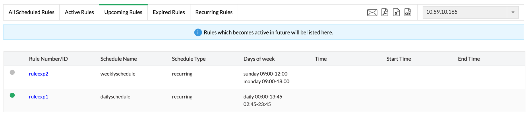 今後のスケジュールで、アクティブになるルールを一覧で表示します。