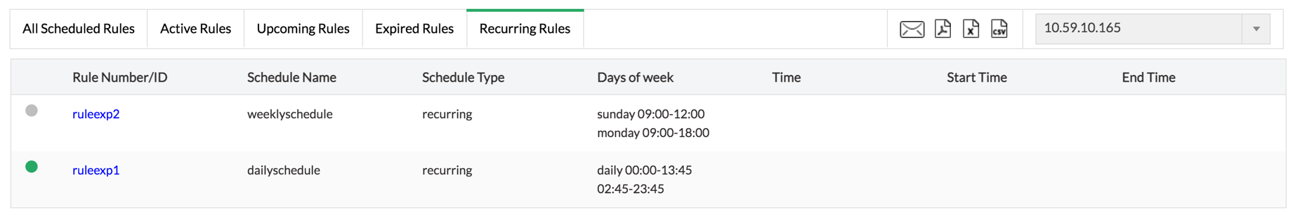 週次や日次スケジュールなど、定期的にアクティブになるよう設定されているルールを一覧で表示します。