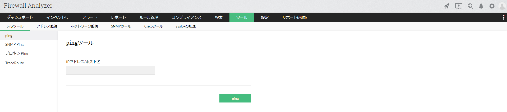 対象ホストのIPアドレス/ホスト名を入力し、Ping応答を確認します。