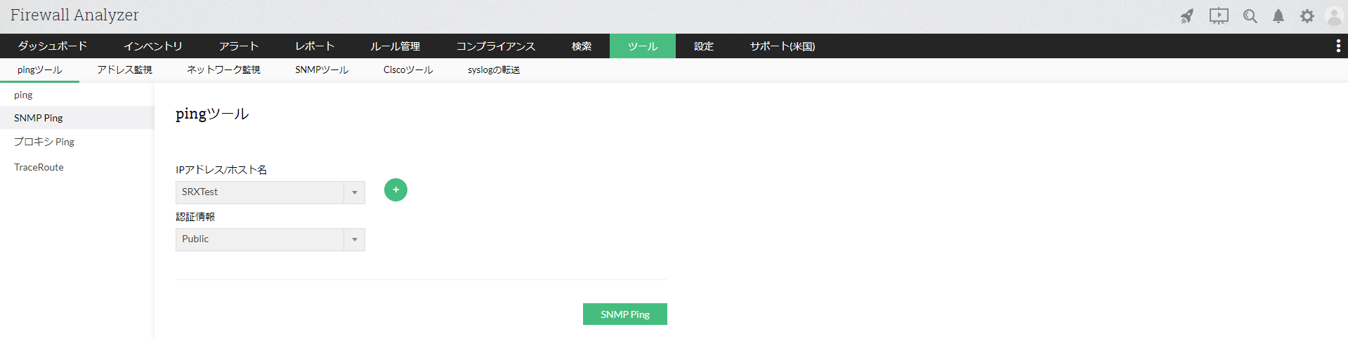 対象ホストのIPアドレス/ホスト名を入力し、認証情報を選択またはパラメーターを入力することで、SNMP Ping応答を確認します。