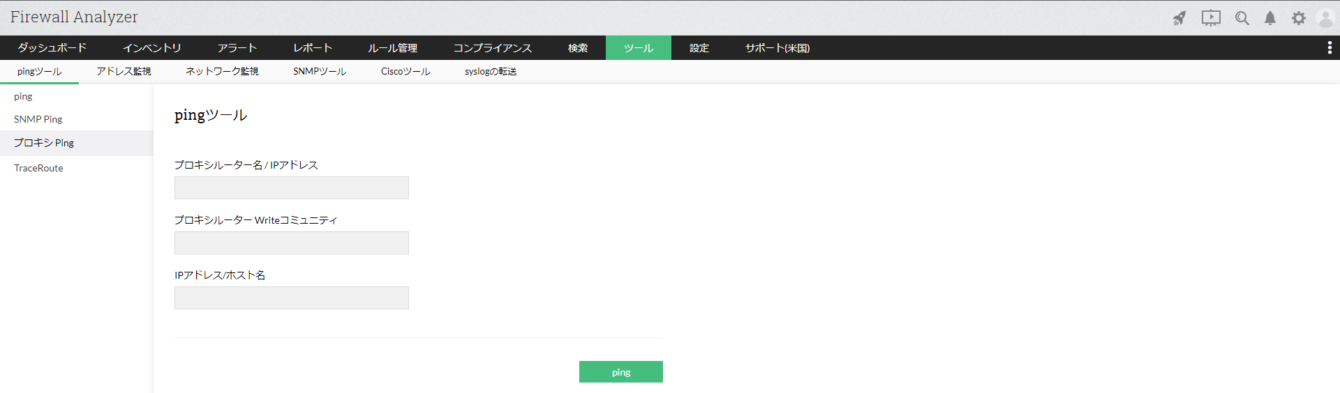 プロキシルーター名、Writeコミュニティ名、IPアドレス情報を入力し、Ping応答を確認します。