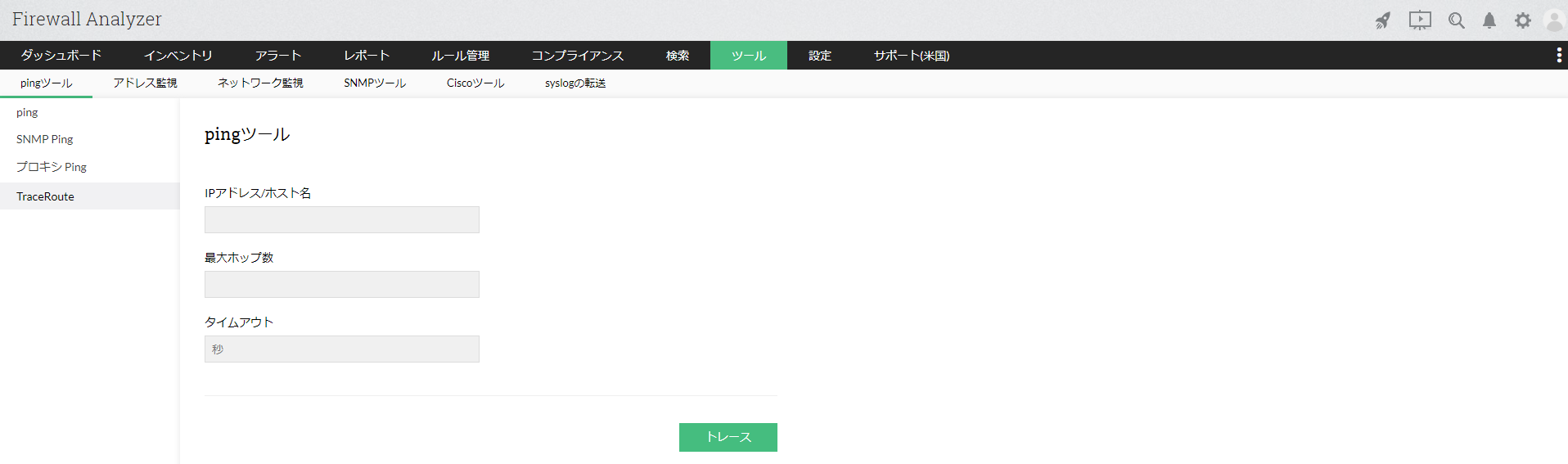 対象ホストのIPアドレス、最大ホップ数、タイムアウト値を入力し、トレース結果を確認します。