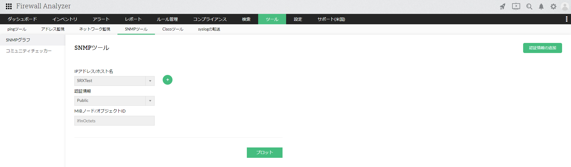 [IPアドレス/ホスト名]に値を入力し、SNMP認証情報、MIBノード/オブジェクトID情報を入力して、[プロット]をクリックします。