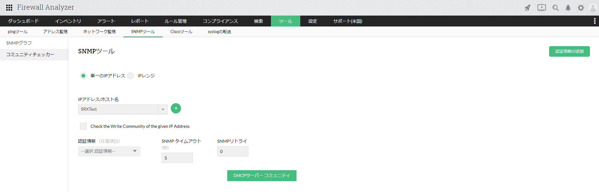 対象ホストとそのSNMPコミュニティのチェックを行います。