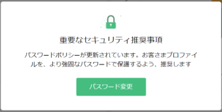 [複雑]に該当するパスワードに更新するよう、以下のメッセージが表示されます。
