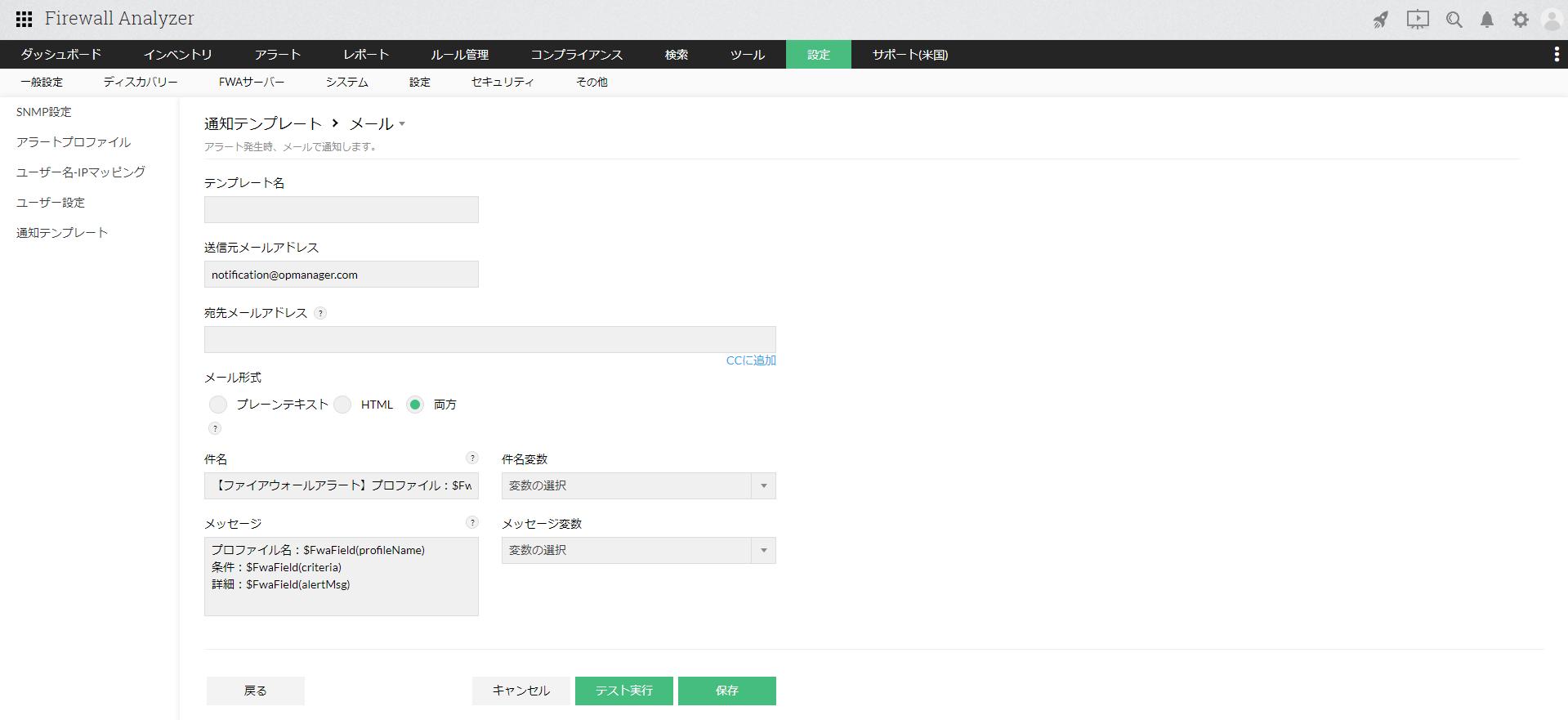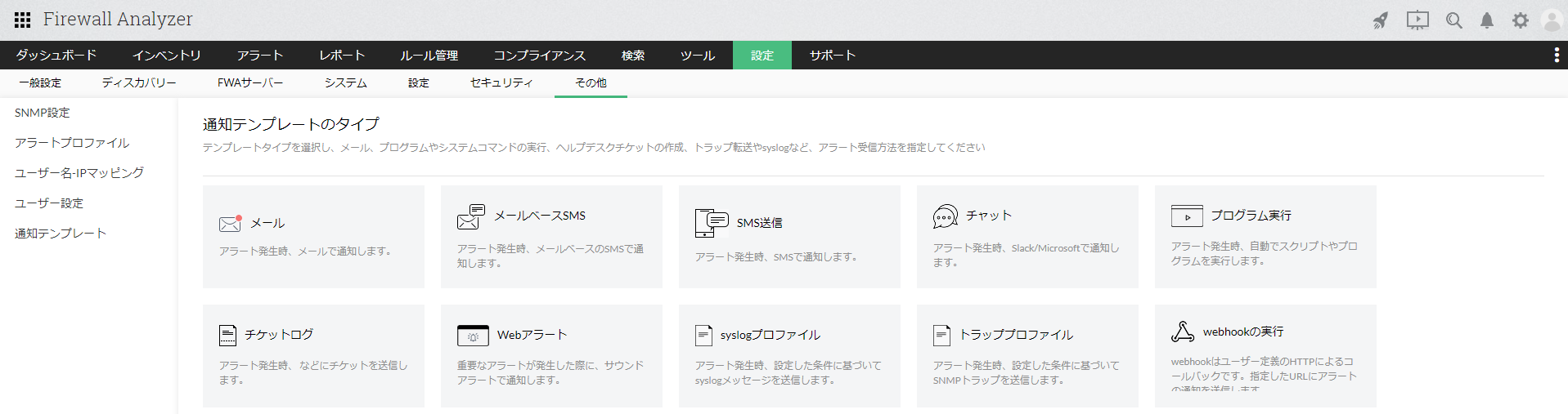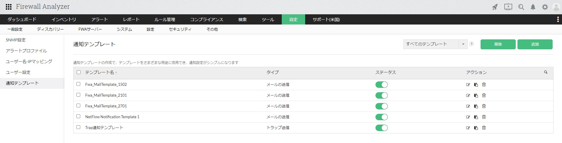 アラート発生時のアクションを事前にテンプレートとして定義し、アラートプロファイル作成時に使用します。