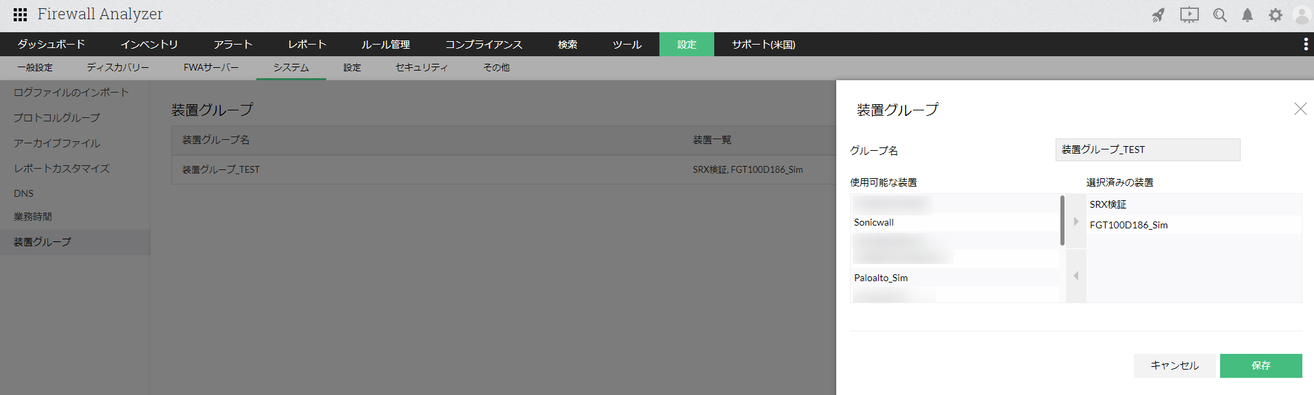 Firewall Analyzerに複数の装置を登録している場合、それらをグループとして作成することができます。