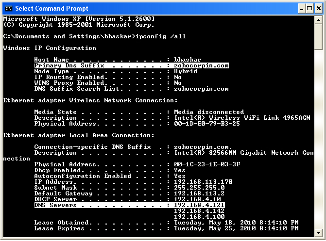 出力結果のDNSサーバーの横に表示される最初のIPアドレスは、プライマリDNSサーバーのIPアドレスを指します。