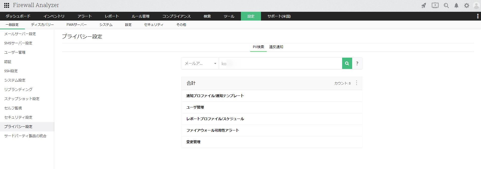 Firewall Analyzerの各モジュールで保存、設定されているPII(Personality Identifiable Information:個人情報)を検索して特定します。