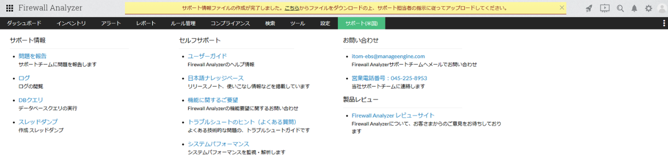 製品UIからダウンロードする手順が利用できない場合、Firewall Analyzerをインストールしたサーバーから直接サポート情報ファイルを取得してください。