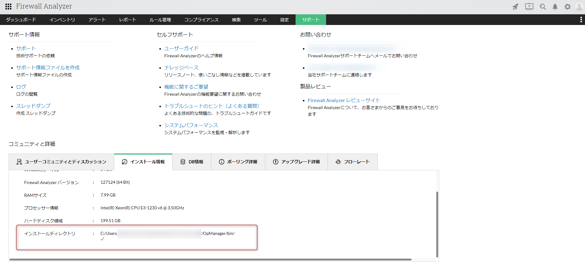サポート情報ファイルは、Firewall Analyzerをインストールしたフォルダー(インストールフォルダー)の配下に存在します。