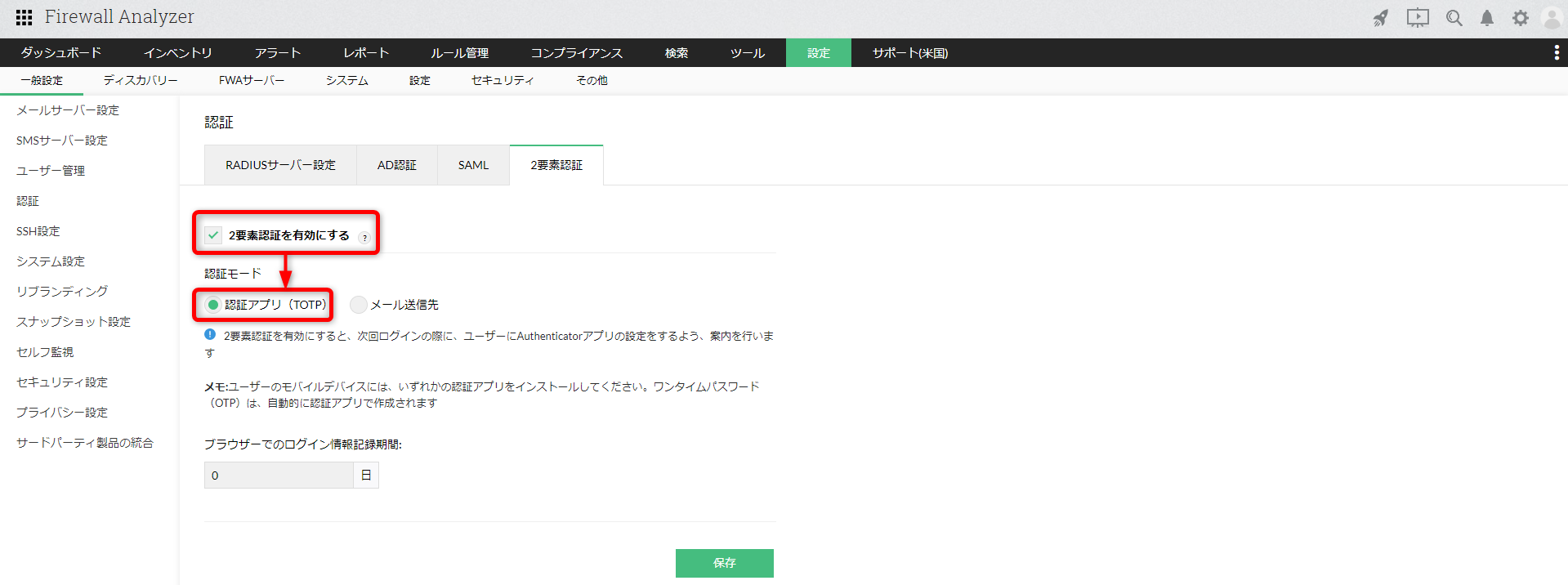 ビルド12.5.476以降、Firewall Analyzerにログインする際の2要素認証機能が実装されました。