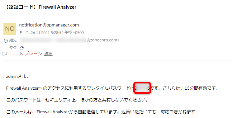 ログインユーザーに設定されたメールアドレス宛てに、認証用のワンタイムパスワードが送信されます。