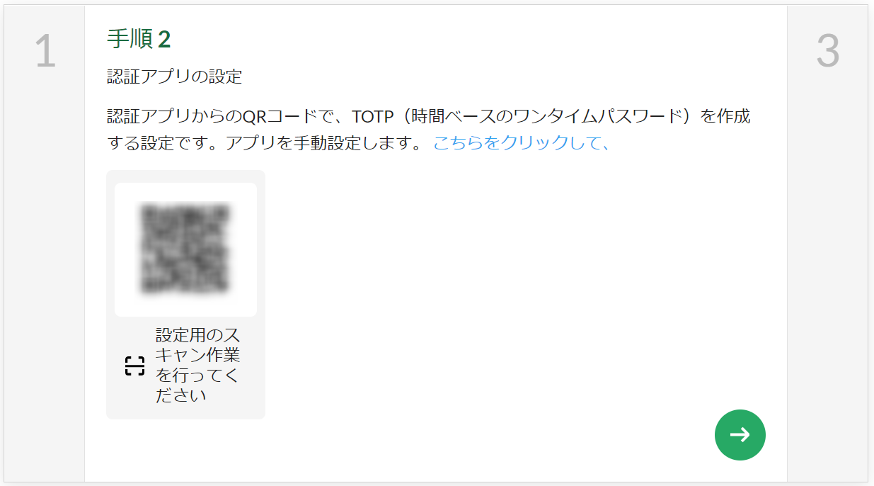 認証に使用するアプリを選択し手順2に進むと、ユーザー専用のQRコードが表示されます。