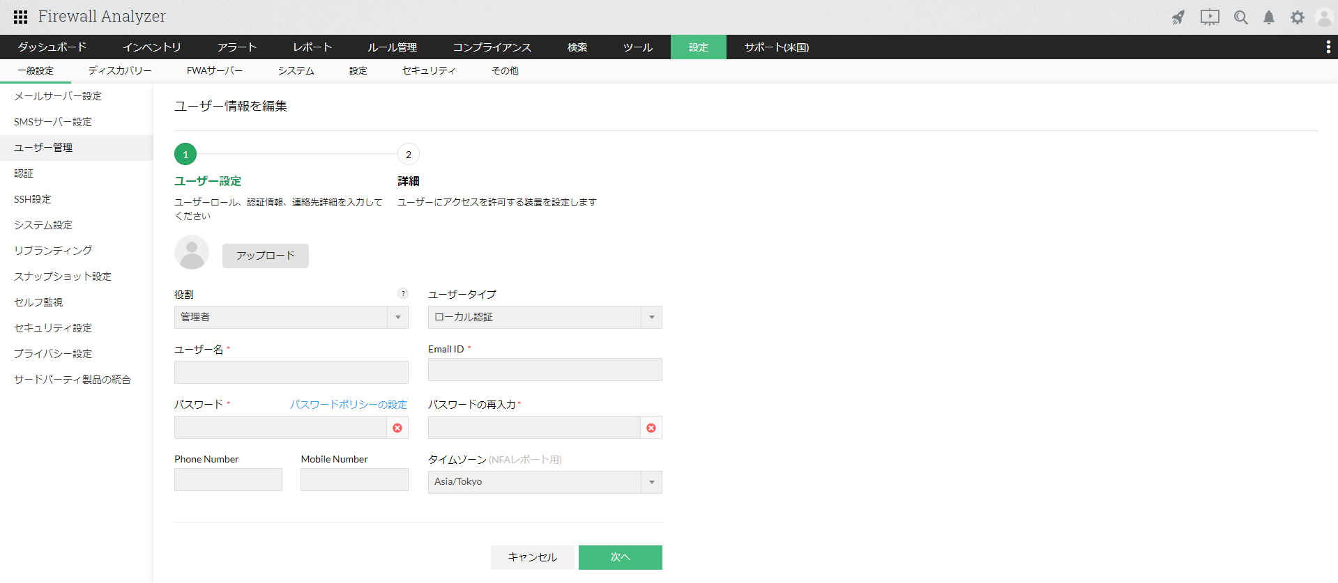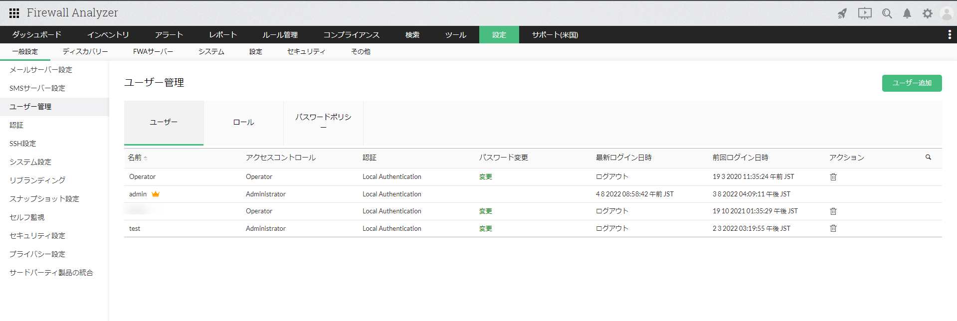 組織内で、複数人の担当者がFirewall Analyzerにアクセスするためのユーザーアカウントを作成できます。