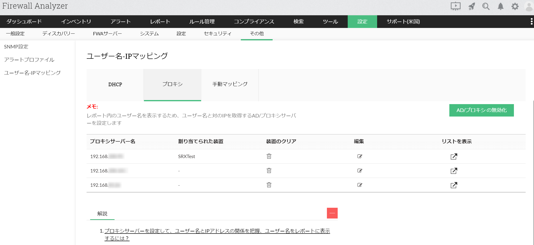 ※Firewall Analyzerにプロキシサーバーが追加されている場合に、一覧に表示されます。 - プロキシサーバーと関連付けるファイアウォールを選択し保存