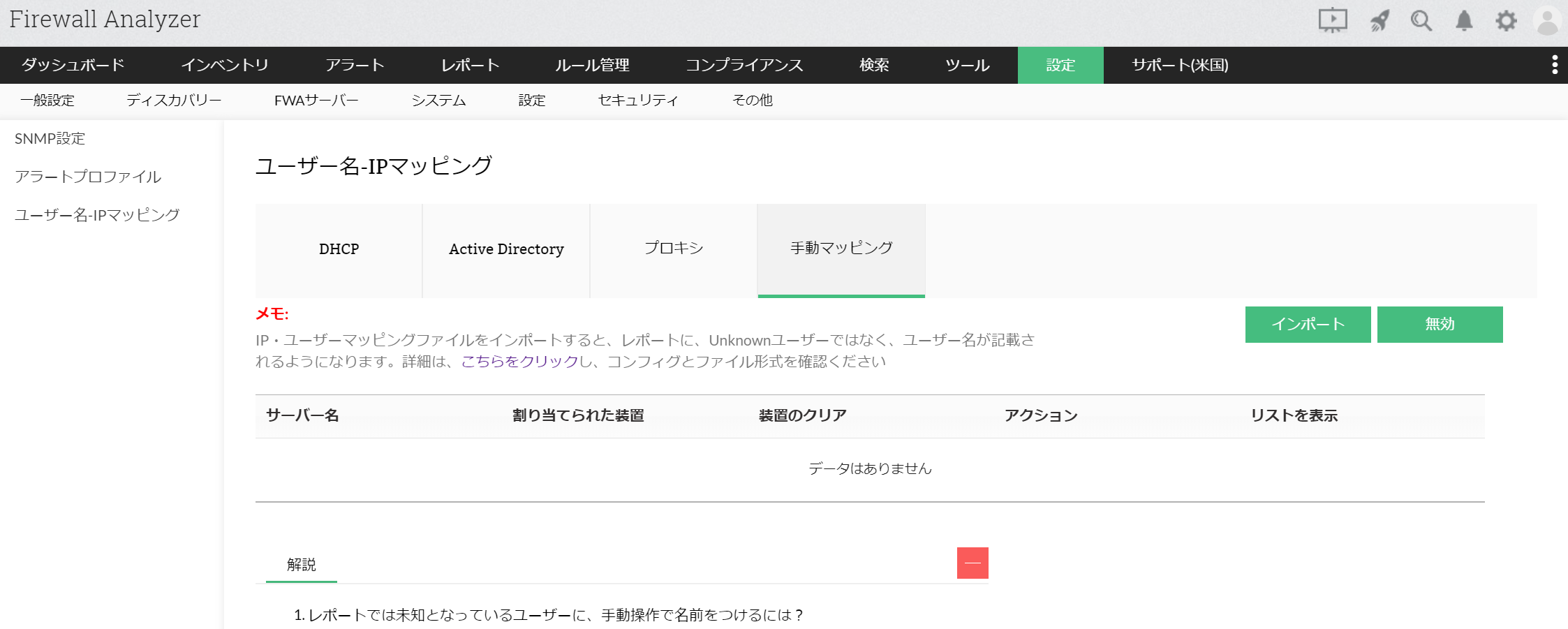 ファイルインポートによる手動マッピングで、IPアドレスと「ユーザー名」を関連付けます。
