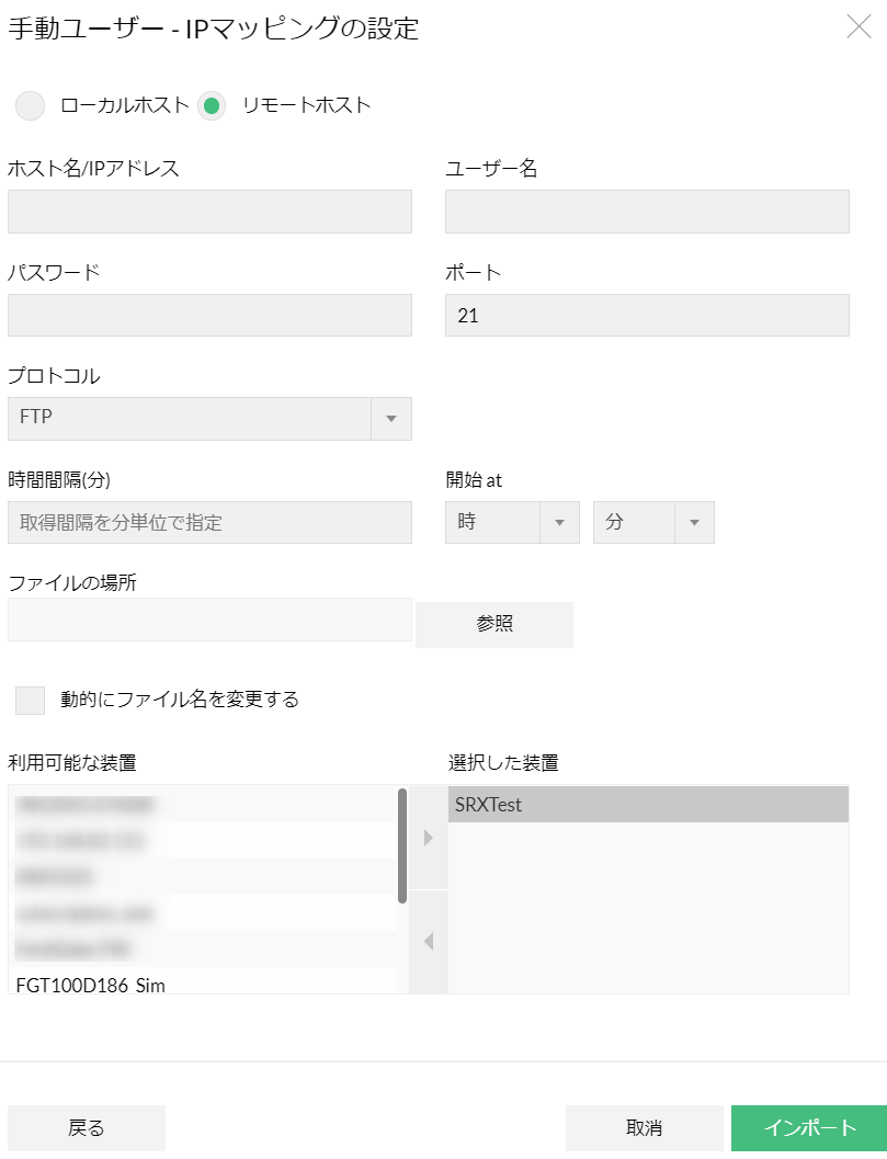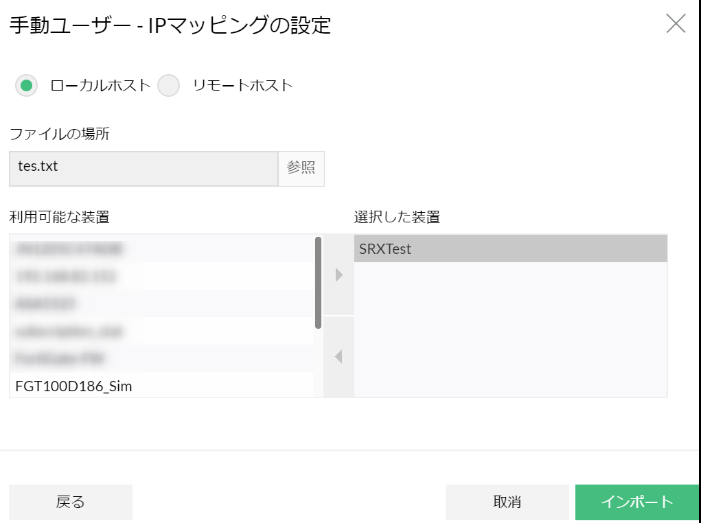 - ローカルホストまたはリモートホストにあるファイルを選択し、割り当て対象の装置を指定の上、インポートを実施