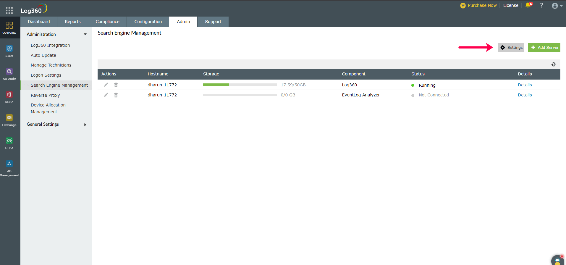 注記:検索エンジン管理は、Linuxサーバー上のEventLog Analyzerをサポートしていません。