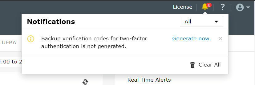 - バックアップ検証コードを有効後、ユーザーはLog360にログインした際にコードを設定するように通知されます。[今すぐ設定]をクリックすることで、二段階認証の設定画面が表示されます。