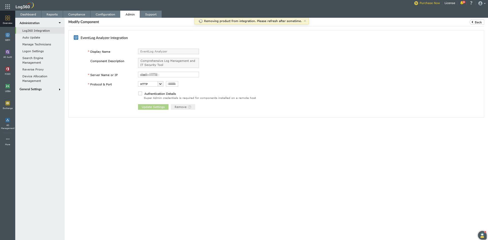 はい、コンポーネント製品はLog360からいつでも削除できます。削除する場合は、統合を解除します。 統合を解除する方法