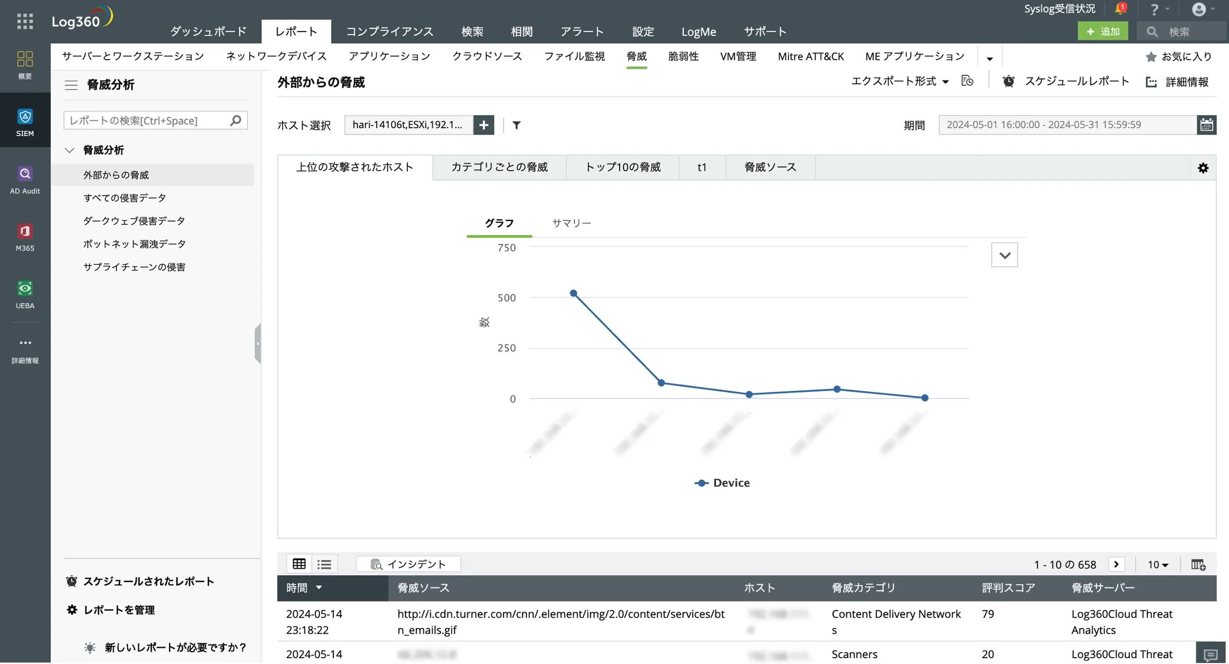 情報システム部門やセキュリティチームが直面する課題の一つとして、「膨大に発生するセキュリティアラートの中から、特に深刻なものをどう見極めるか」が挙げられます。この課題は、Log360の高度な脅威分析機能で解決可能です。Log360は、攻撃の種類(マルウェアやフィッシングなど)を特定し、その情報をもとに脅威の深刻度を分析します。これにより、どの脅威に優先的に対応すべきかを効率的に判断できます。
