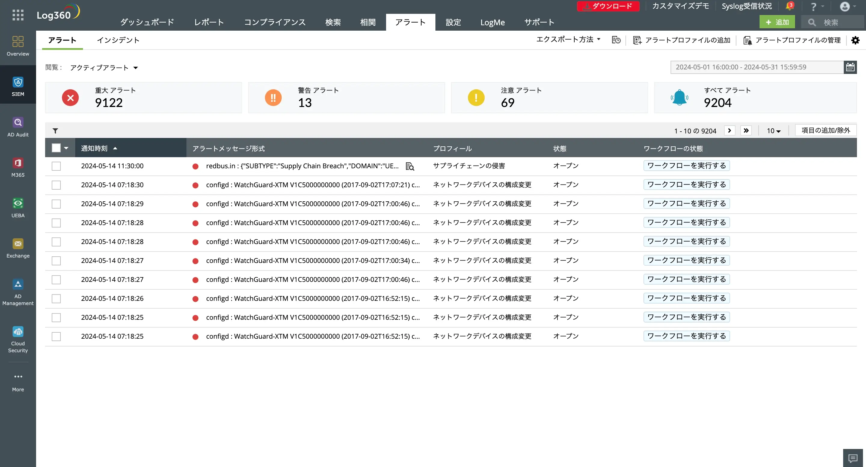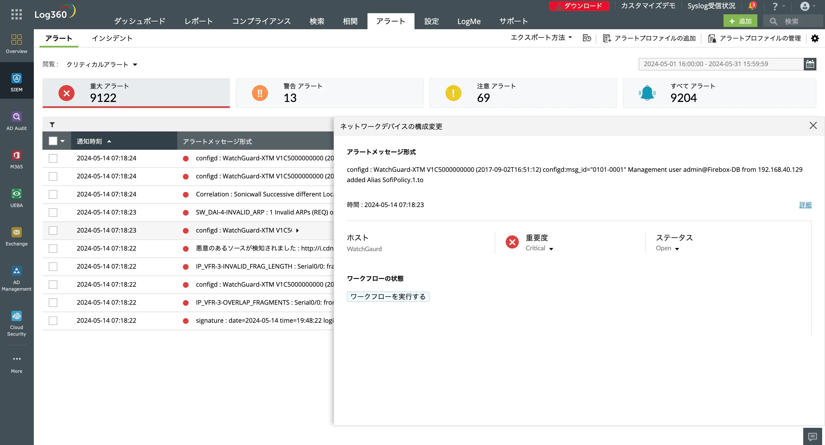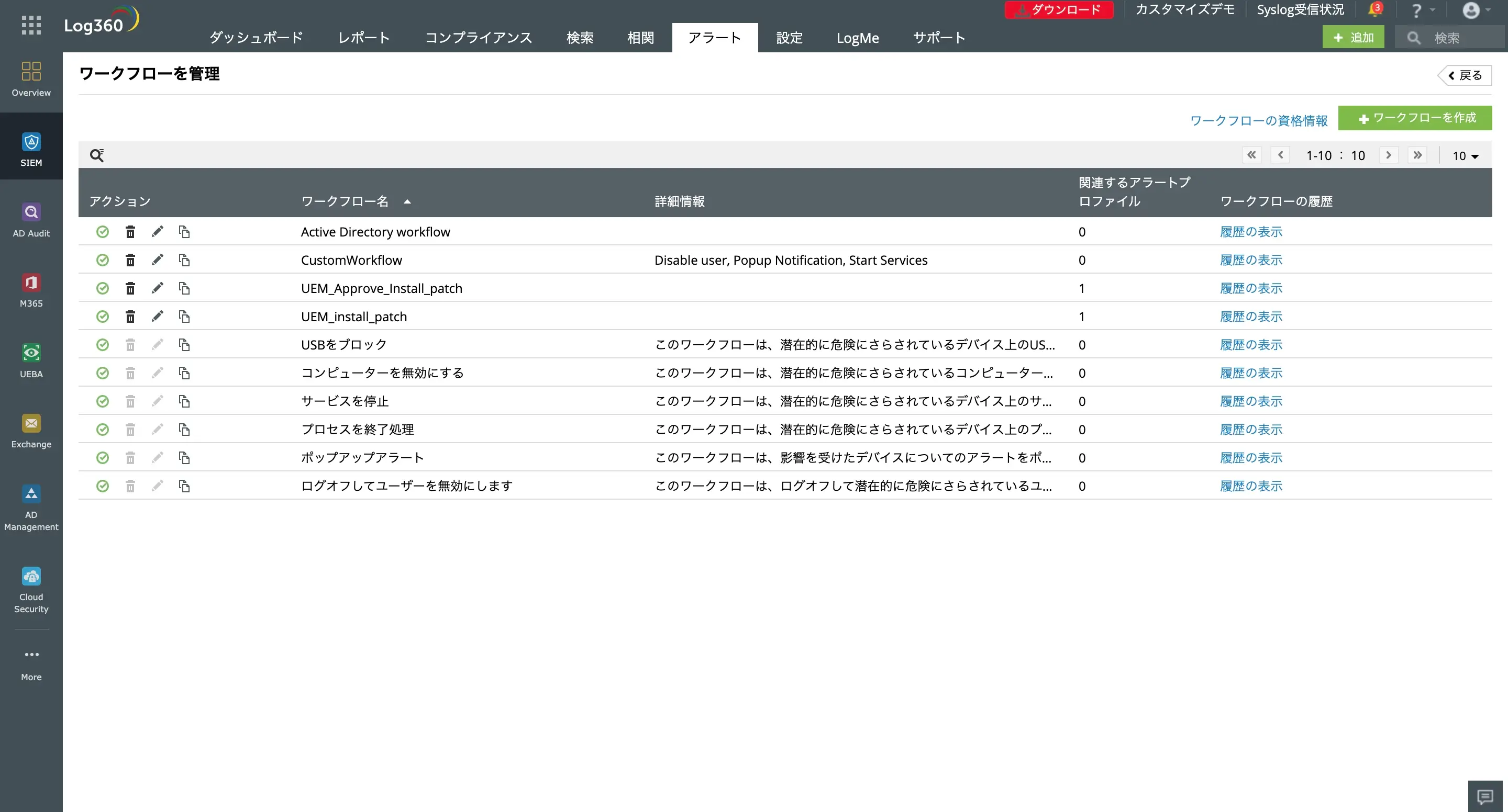 多くの攻撃者は、外部から接続可能なシステムや既知の脆弱性を侵入口として悪用します。Log360は、こうしたサイバー脅威を未然に検知・防止するソリューションです。Log360は、ブラックリストに登録されているIPアドレスから通信があった場合、事前定義されたアラートを起動し、その不正アクセスを検知・防止します。さらに、その場限りの阻止に留まらず、自動的にワークフローを起動し、不審なIPアドレスをファイアウォールのブロックリストに登録します。この対策により、脅威インテリジェンスで危険と見なされているIPアドレスを、恒久的にブロックできます。