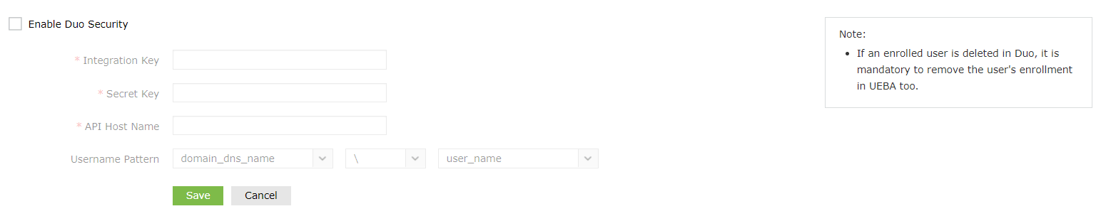 - Duo Security で使用するユーザー名パターンを正確に選択してください。