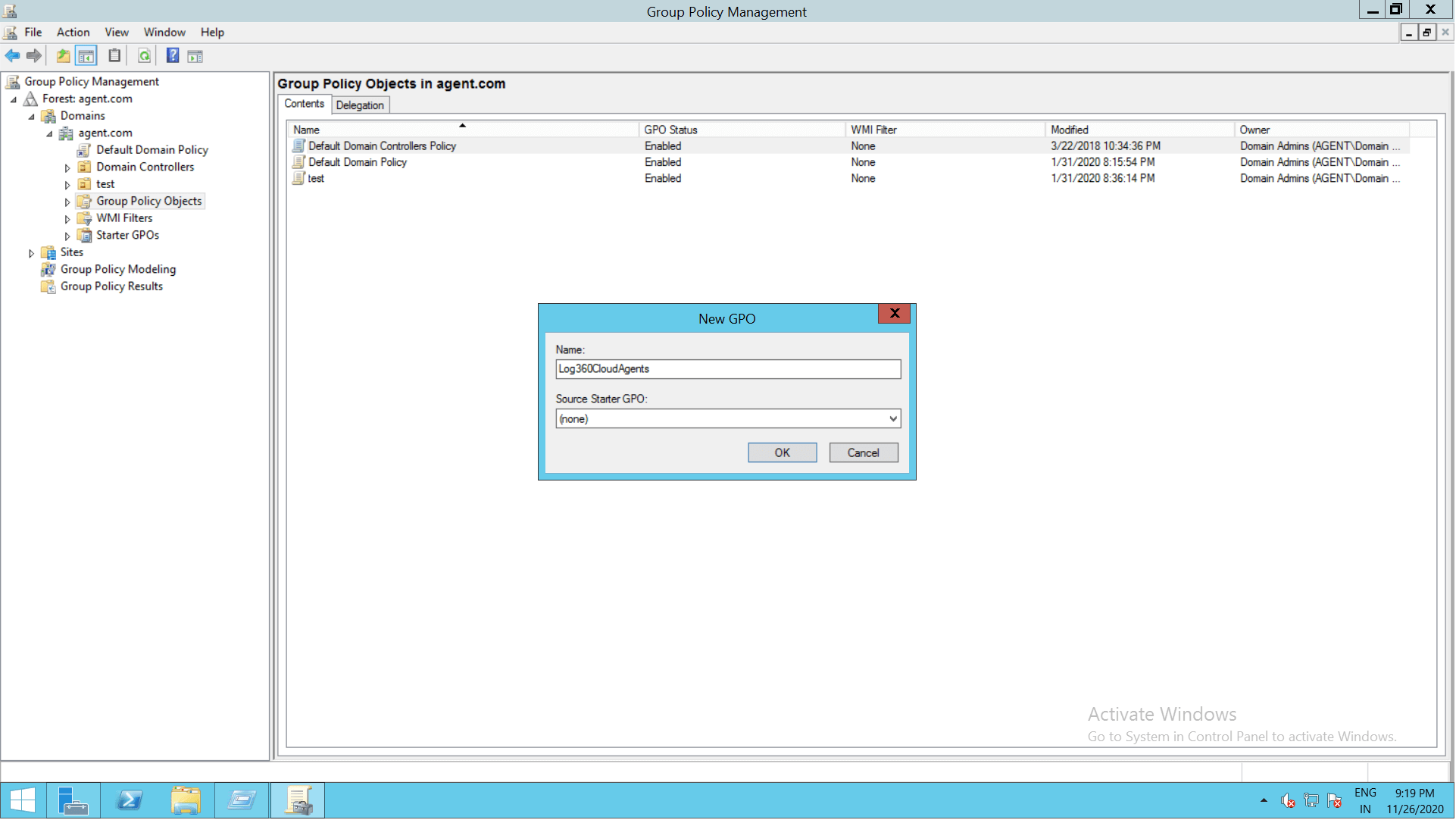 - GPOに適切な名前を付け、[OK]をクリックします。
