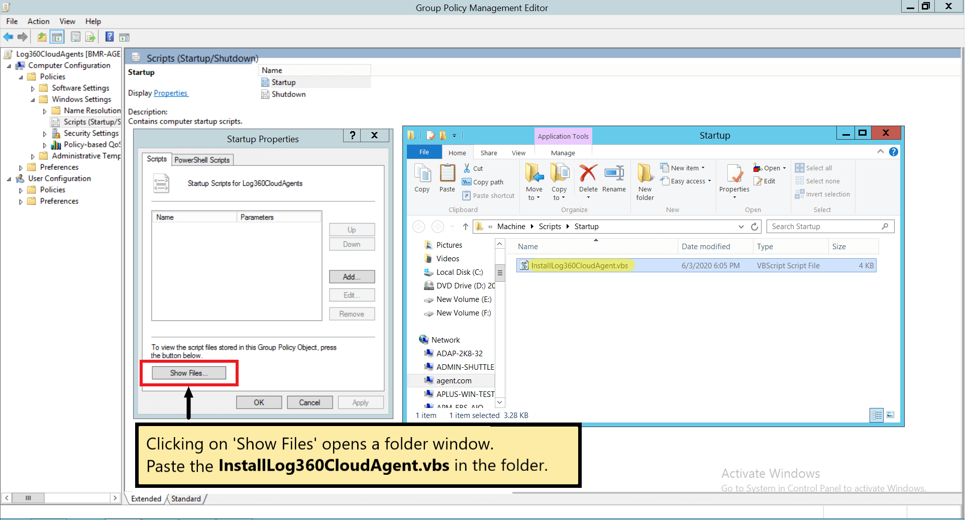 Log360 CloudエージェントをGPOを使ってインストールする前に、サーバーのネットワーク共有フォルダに以下のファイルを配置します。
