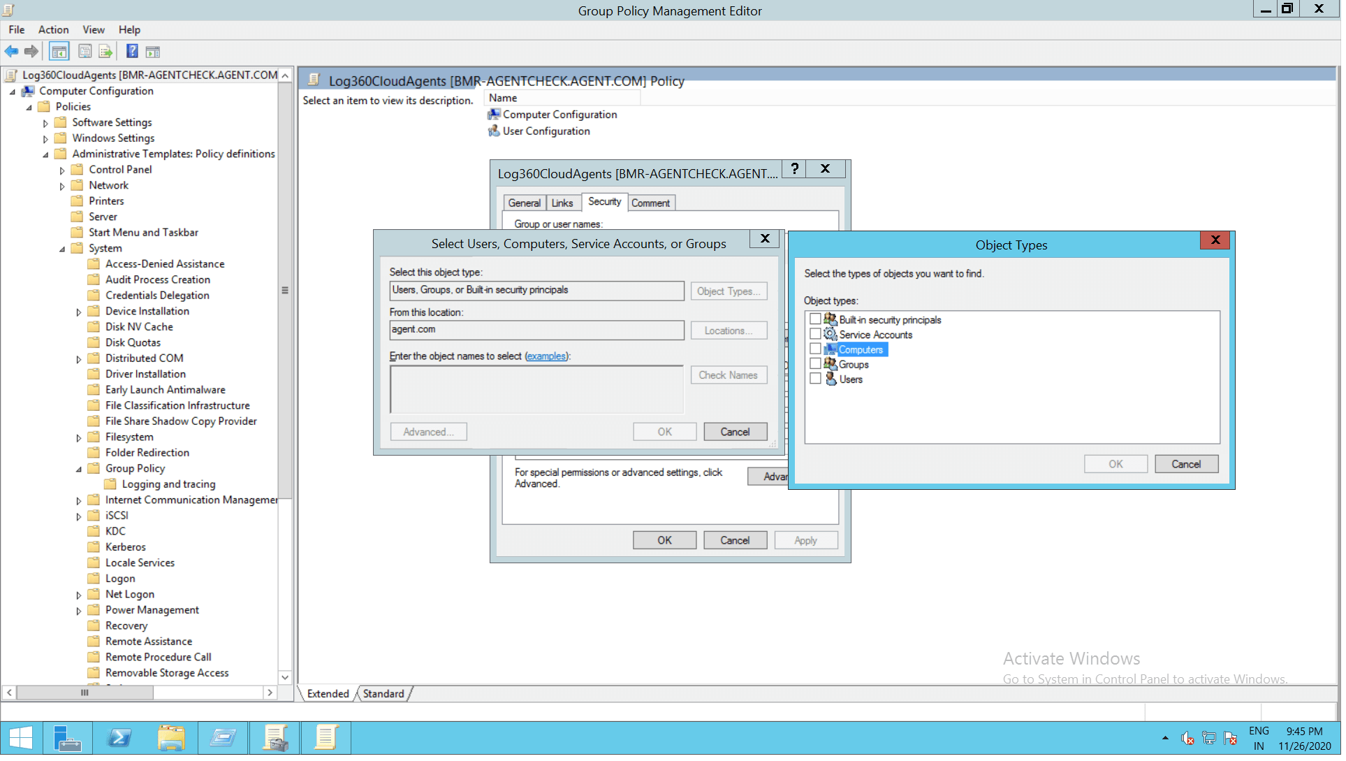 お役立ち情報:エージェントを複数のコンピューターに一度にインストールするには、ADグループを作成し、エージェントをグループにインストールする必要があるすべてのコンピューターを追加します。次に、GPOをそのグループに適用します。