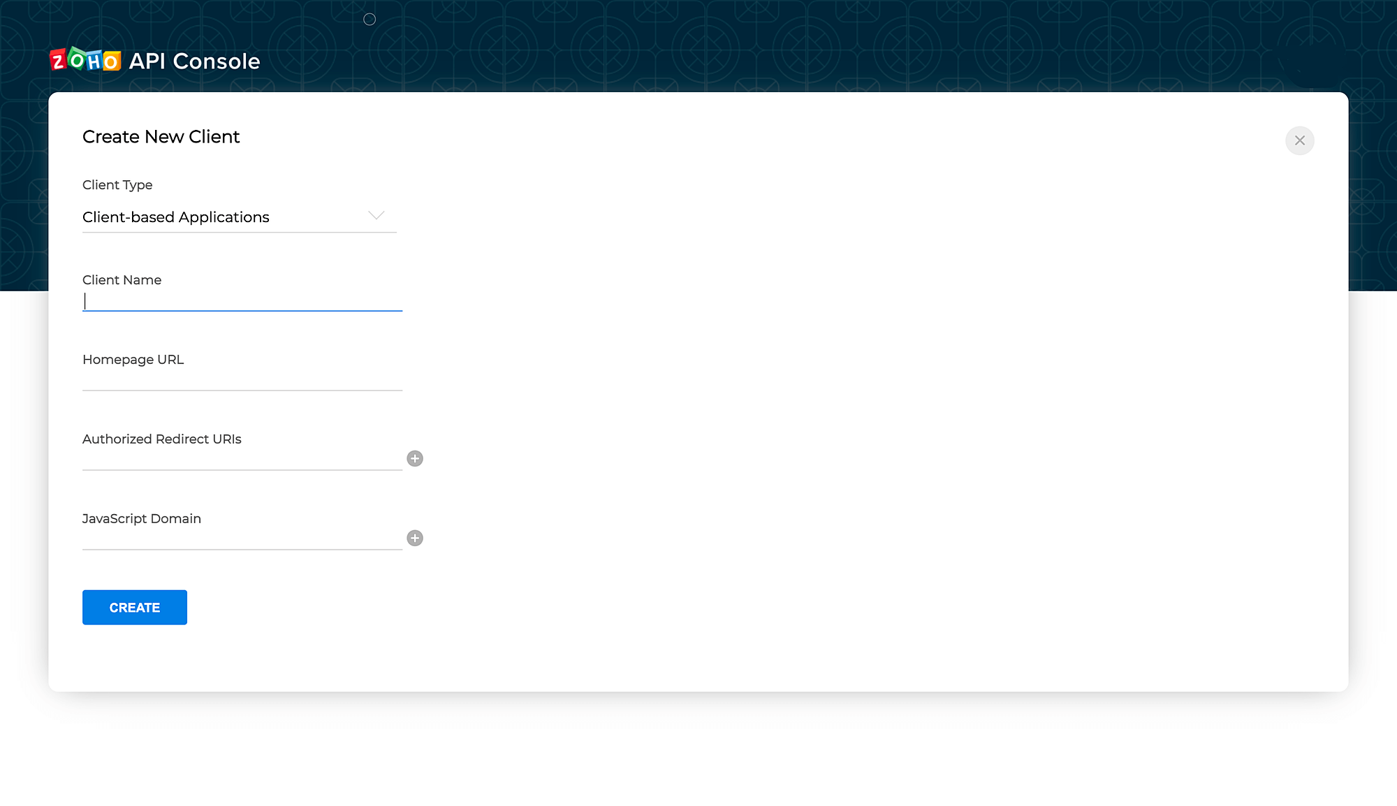 - Zoho APIコンソールが開いたら、[開始]をクリックします。