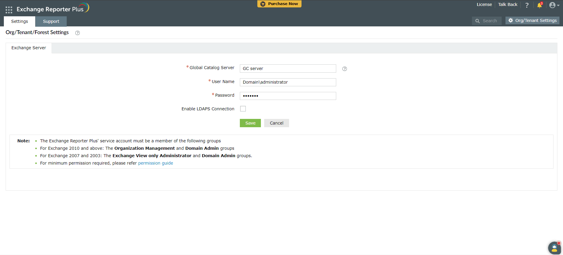 - Exchange Reporter PlusがExchange Serverと同じフォレストにインストールされた場合は、Exchange Serverは自動で検出されます。