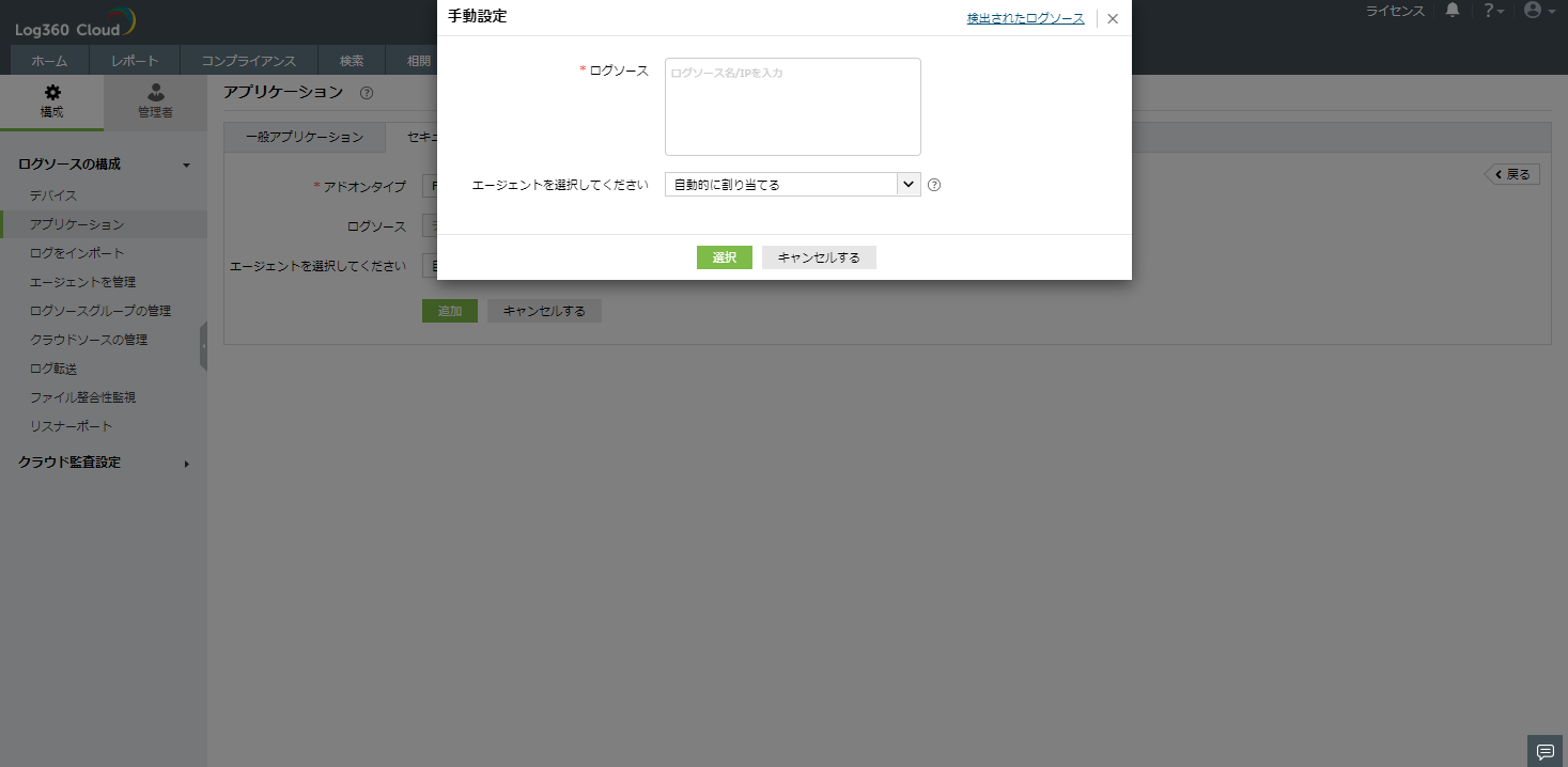 - [選択]をクリックし、ログソースを追加します。