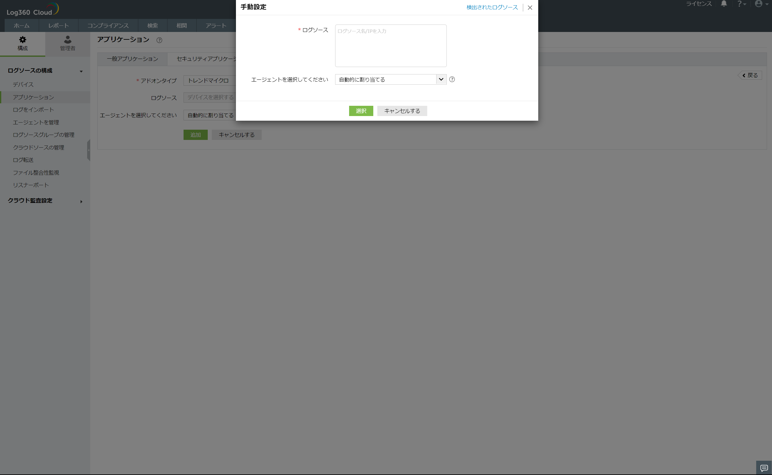 - [選択]をクリックし、ログソースを追加します。