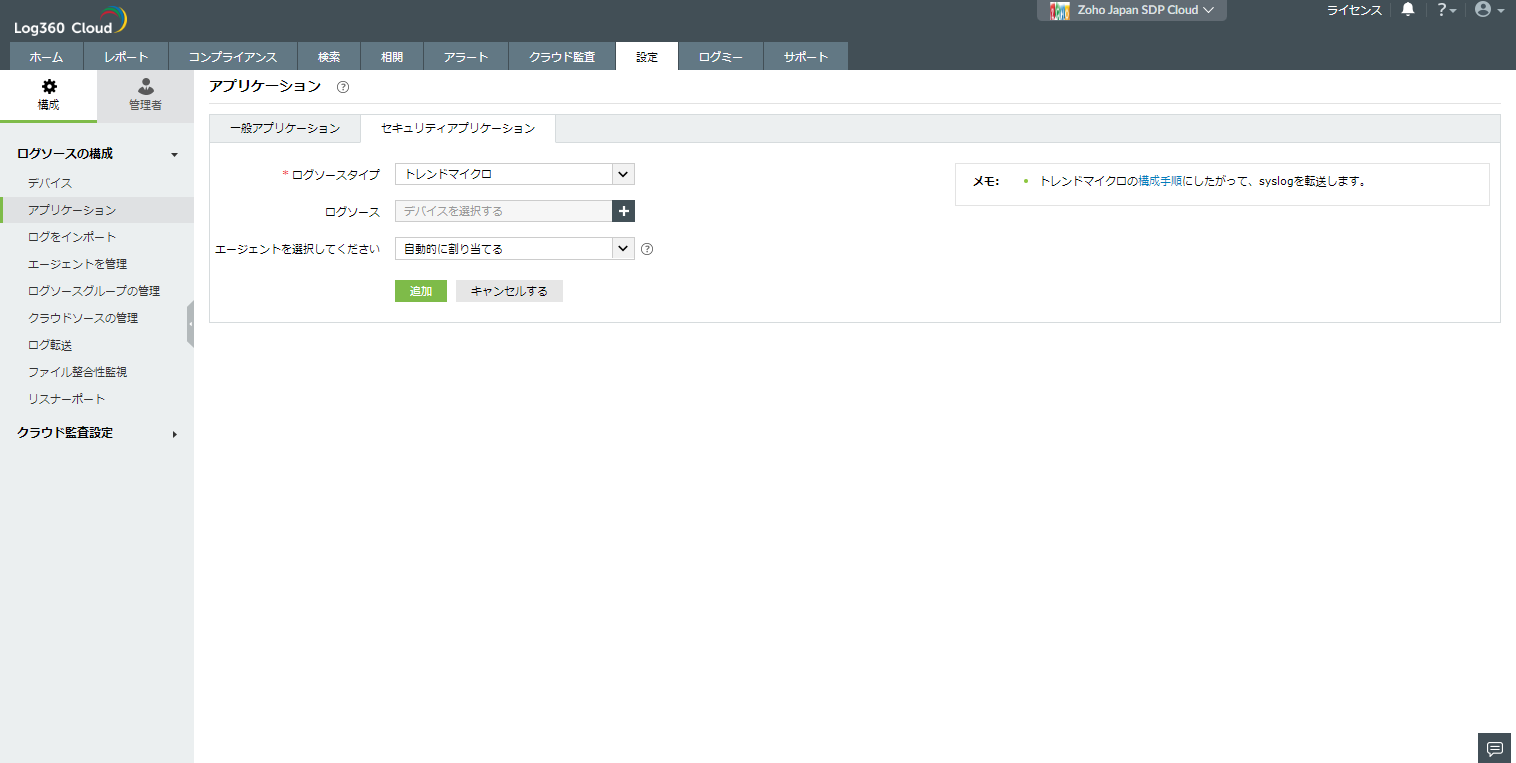 セキュリティイベントのLog360 Cloudへの転送設定は下記の手順で行います。