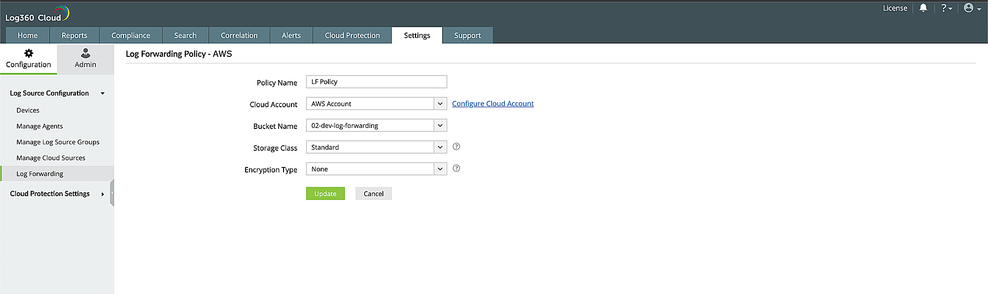 ログ転送機能を使用することで、収集したログを指定クラウドアカウントに転送できます。